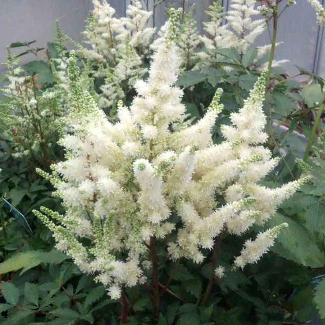 Astilbe x ‘Younique White’ 草丈35㎝、小型で花付き良く、耐病性に優れた白花品種。
