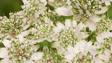 アストランチアAstrantia major ‘Star of Royals’ 草丈60cm、白にピンクを交えた優しい花色。梅雨時期は雨よけをすると管理しやすい。
