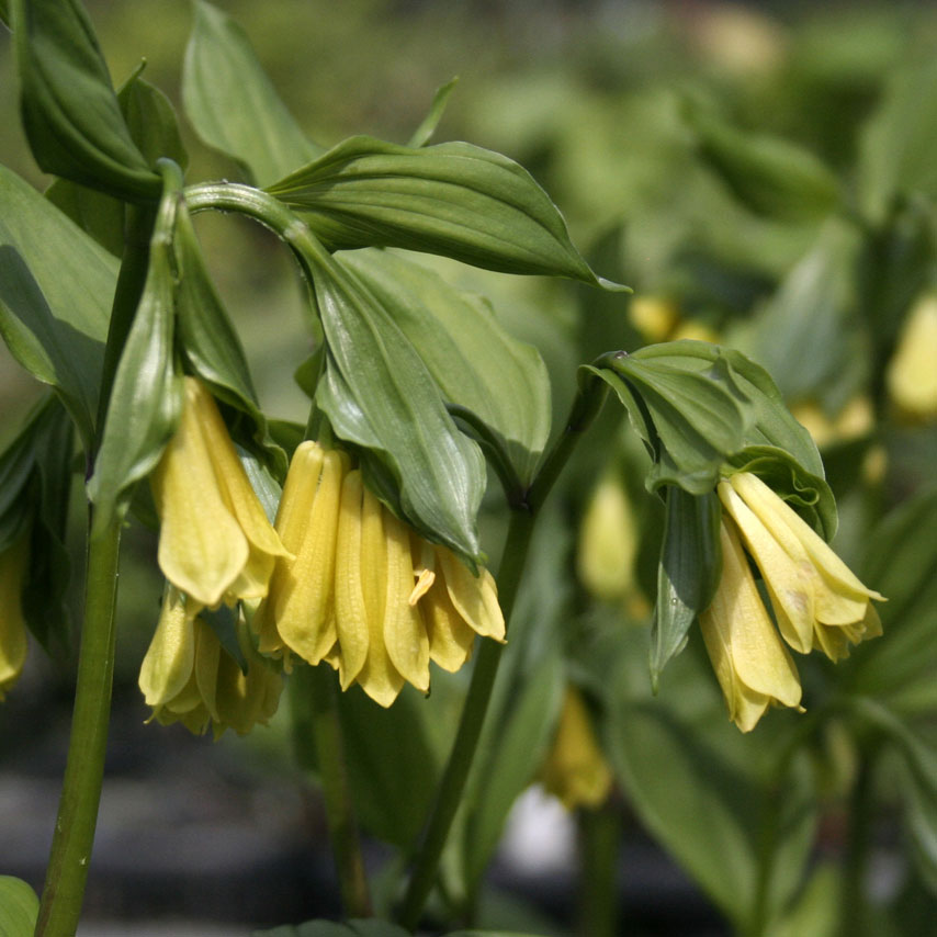 Disporum flavens 草丈45-60cm、鮮やかな黄色い釣鐘状の花が特徴。