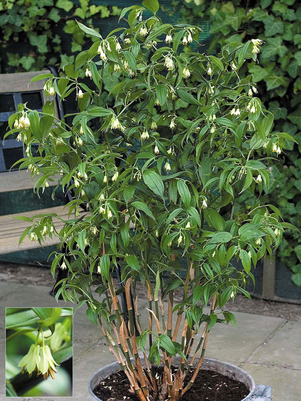 ユリDisporum ‘Green Giant’ 草丈30-100cm、竹のような茎を持つ常緑種で初夏に咲く花と実も美しい。