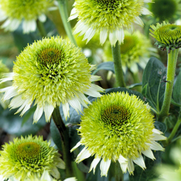 Echinacea x ‘Greenline’ 草丈60cm、明るい緑色の八重咲品種で外弁は白色。