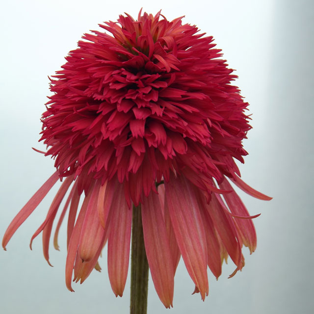 Echinacea purpurea ‘Irresistible’ 草丈75cm、大輪・濃赤の八重咲品種。