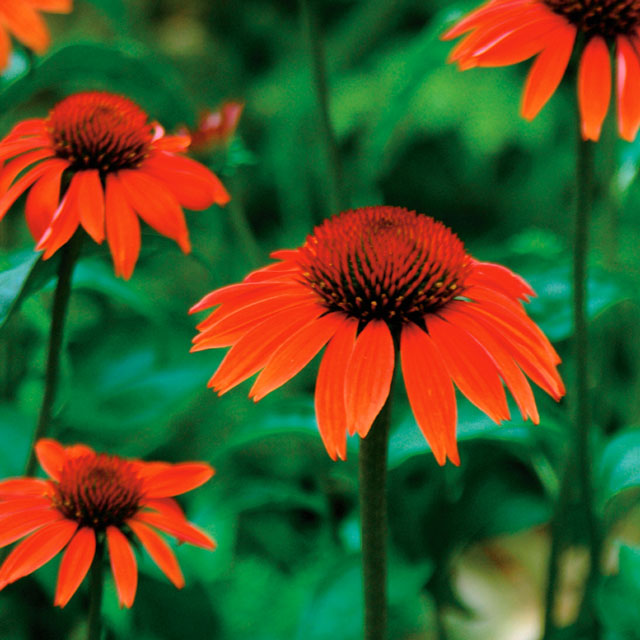 Echinacea purpurea ‘Sundown’ 草丈85cm、鮮やかなオレンジ色の花を多数付ける庭植え向き品種。
