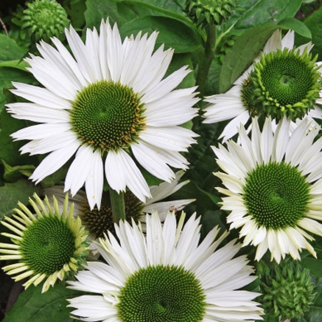 Echinacea purpu Virgin 草丈50㎝、中心が緑色の純白品種。大輪で香り良く花弁が垂れさがらない。