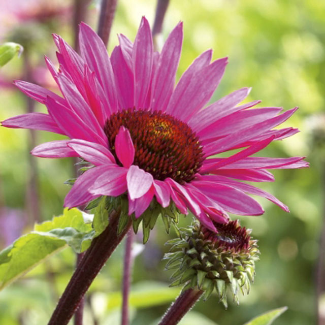 Echinacea purpu Fatal Attraction 草丈60㎝、黒い花茎に桃紫の蛍光色の花色が特徴。人気品種。