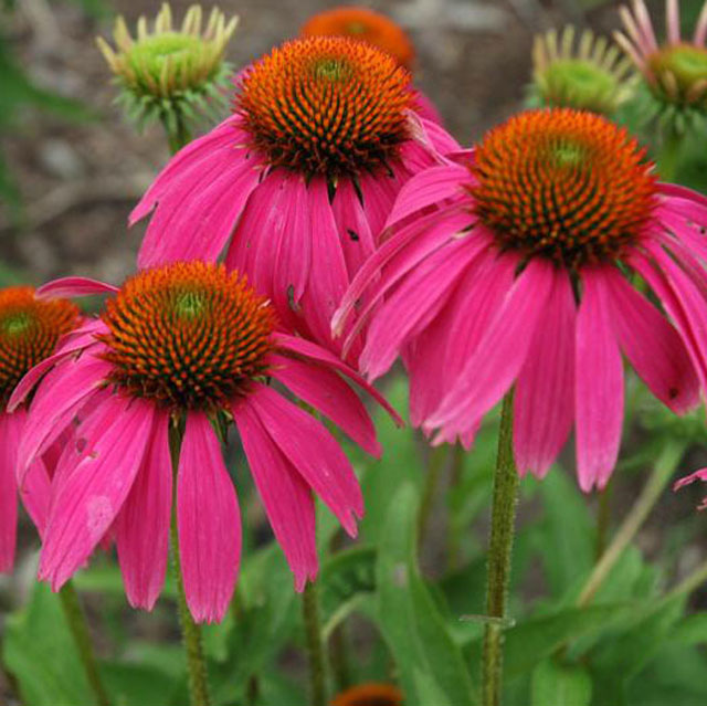 Echinacea purpurea ‘Kim’s Knee High’ 草丈45cm、濃ピンクで花弁の先は白く抜ける人気品種。