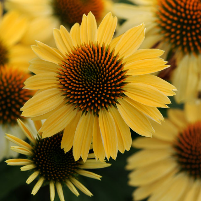 Echinacea purpurea ‘Sandy Yellow’ 草丈60cm、鮮やかで明るい黄色の人気品種。