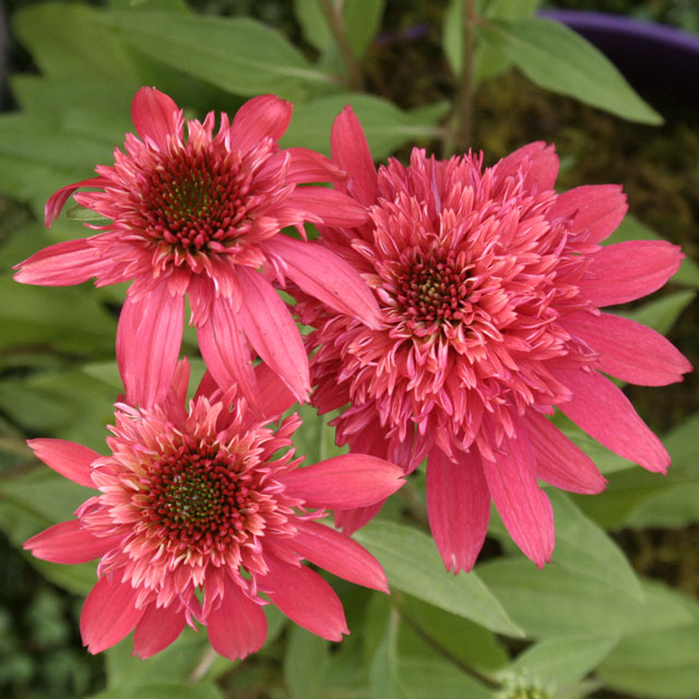 Echinacea purpurea ‘Cranberry’ 草丈70cm、濃朱赤色の八重咲品種。