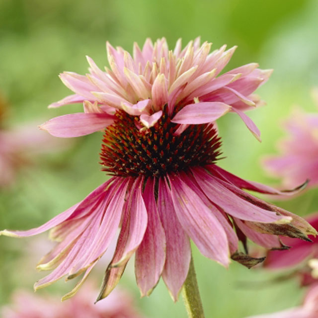 Echinacea purpu Doppeldecker 草丈60㎝、中心部から花弁が現れる二段咲きの桃紫花品種。