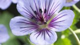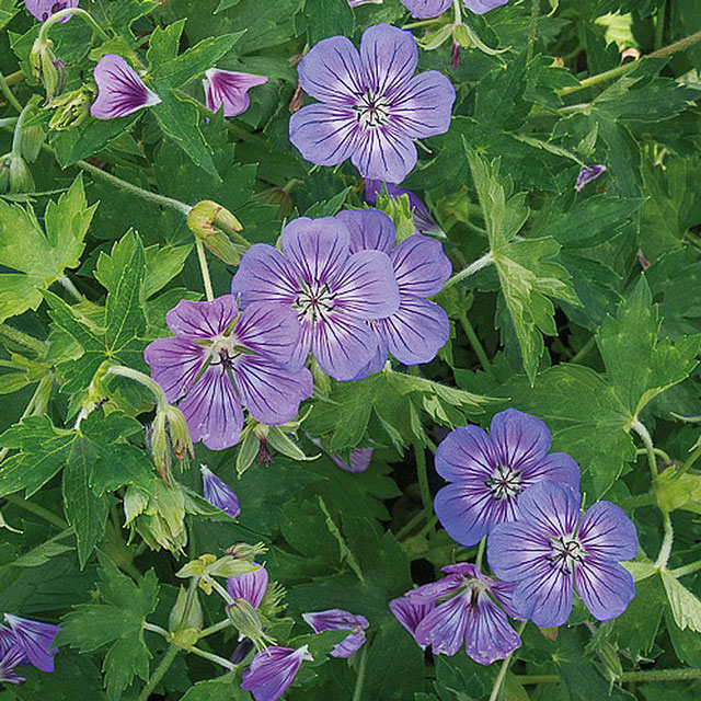 Geranium ‘Havana Blues’ 草丈40cm、青紫色の大輪花で筋が目立つ人気品種。