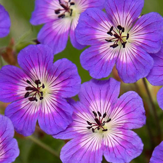 Geranium Rise and Shine 草丈30㎝、青紫色に底白の2色咲き新品種。開花期間が長く楽しめる。