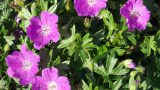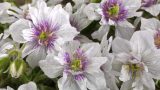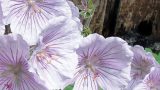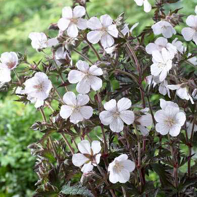 Geranium x ‘Midnight Clouds’ 草丈35cm、銅色の葉に白い大輪花。