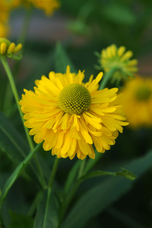 Helenium ‘Double Trouble’ 草丈80㎝、明るい黄色の八重咲き品種で花付きがよい。