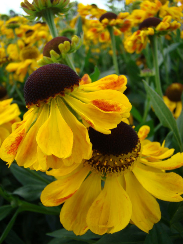 Helenium ‘El Dorado’ 草丈80cm、黄色い花弁に赤い紅をさす切り花向きの品種で開花期間も長い。