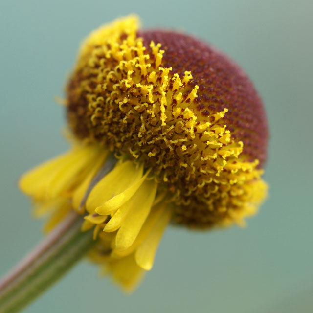 Helenium Autumn Lollipop 草丈100㎝、小さく退化した黄色い花弁のため、茶色いボール状の面白い花を咲かせる。