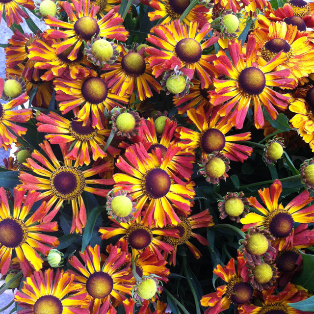 ヘレニウム「ベティー」 【D4352901】 キク 2019.10.26 Helenium Betty 草丈70㎝、花弁の表が黄色、裏が朱赤色の二色咲き小型品種。 開花期 7-9月 冬季 落葉 日当たり 日向 耐寒性 強 水やり 普通 施肥 春・秋に油粕肥料、生育時に有機液肥を2週間に1回程度 用土 オリジナル園芸培養土