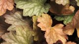 Heuchera ‘Coffeebean’ 草丈25cm、キャラメルのような褐色葉の新品種。カーニバル・シリーズ。