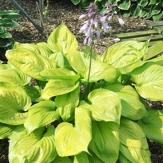 Hosta Sum and Substance 草丈75㎝、大型の黄金葉品種で明るい日陰での栽培がお勧め。