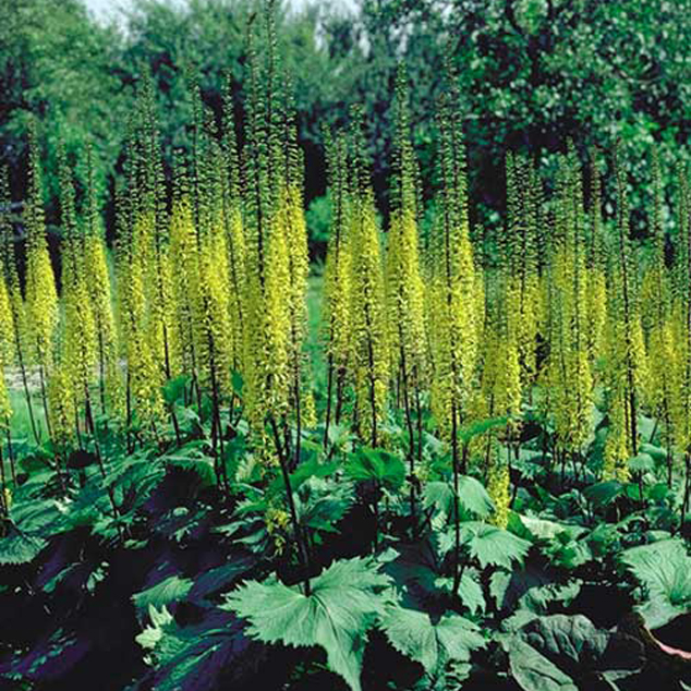 Ligularia stenocephala ‘The Rocket’ 草丈180cm、鮮やかな黄色いブラシ状の花は背丈ほどにもなる。