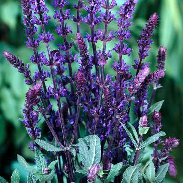 Salvia nemorosa ‘Caradonna’ 草丈45cm、黒紫色の花茎に濃青紫色の花をつける。