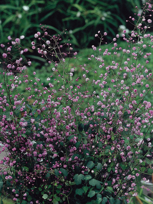 Thalictrum ‘Hewitts Double’ 草丈100cm、桃紫色の小さな八重咲きの花を長期間咲かせる。