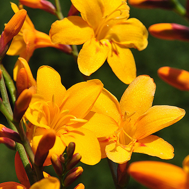 Crocosmia ‘Columbus’ 草丈60cm、オレンジがかった鮮やかな黄色の切花向き品種。