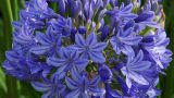 アガパンサスAgapanthus ‘Queen Mum’ 草丈150cm、白と青の二色咲きでボール状の花冠を作る。