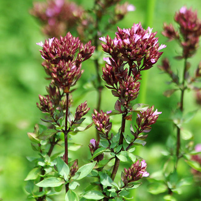 Origanum laevigatum ‘Herrenhausen’ 草丈70cm、濃赤紫の蕾と可憐なピンクの花のコントラストが美しい。