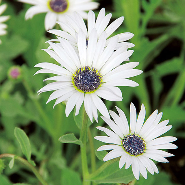 アークトチス・グランディス 【K16074】 キク 2019.10.26 Arctotis grandis 草丈40cm、白い花弁に青い芯でシルバーリーフ 開花期 7-9月 冬季 落葉 日当たり 日向 耐寒性 強 水やり 普通 施肥 春・秋に油粕肥料、生育時に有機液肥を2週間に1回程度 用土 オリジナル宿根草の土