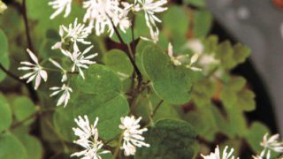 薄き緑色の小さな花を多数付ける常緑種。開花期 4-6月 冬季 常緑 日当たり 日向 耐寒性 強 水やり 普通 施肥 春・秋に油粕肥料、生育時に有機液肥を2週間に1回程度 用土 山野草の土/基本培養土