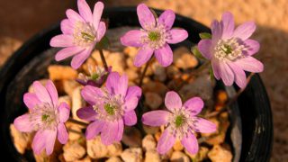 レースのような細かな葉が魅力。小鉢植えに向く佳品。開花期 3-4月 冬季 常緑 日当たり 明るい日陰 耐寒性 強 水やり 多め 施肥 春・秋に油粕肥料、生育時に有機液肥を2週間に1回程度 用土 山野草の土/基本培養土