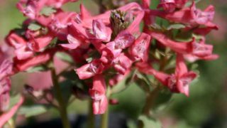 濃赤紫色の球根性エンゴサク。開花期 3-5月 冬季 落葉 日当たり 明るい日陰 耐寒性 強 水やり 普通 施肥 春・秋に油粕肥料、生育時に有機液肥を2週間に1回程度 用土 山野草の土/基本培養土