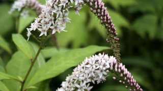 珍しい白花選抜品種。開花期 4-5月 冬季 落葉 日当たり 日向 耐寒性 強 水やり 普通 施肥 春・秋に油粕肥料、生育時に有機液肥を2週間に1回程度 用土 山野草の土/基本培養土