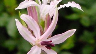 フリルがかった繊細な花弁が特徴の強健種。開花期 10-11月 冬季 冬緑 日当たり 日向 耐寒性 強 水やり 少なめ 施肥 春・秋に油粕肥料、生育時に有機液肥を2週間に1回程度 用土 山野草の土/基本培養土