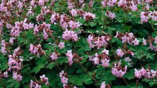 ピンクがかった薄紫の花を次々と咲かせる。開花期 4-5月 冬季 落葉 日当たり 日向 耐寒性 強 水やり 普通 施肥 春・秋に油粕肥料、生育時に有機液肥を2週間に1回程度 用土 山野草の土/基本培養土