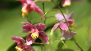 桃紫色の花と赤く染まる新葉の組み合わせが美しい。開花期 4-5月 冬季 落葉 日当たり 明るい日陰 耐寒性 強 水やり 普通 施肥 春・秋に油粕肥料、生育時に有機液肥を2週間に1回程度 用土 山野草の土/基本培養土