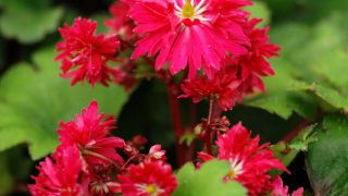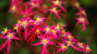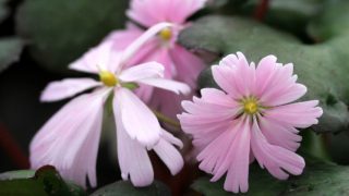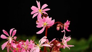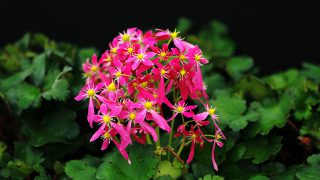 桃赤色の丸弁整形花。開花期 9-11月 冬季 落葉 日当たり 日陰 耐寒性 強 水やり 多め 施肥 春・秋に油粕肥料、生育時に有機液肥を2週間に1回程度 用土 山野草の土/基本培養土