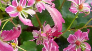 ねじれを交える底白弁の桃花変わり咲き品種。開花期 9-11月 冬季 落葉 日当たり 日陰 耐寒性 強 水やり 多め 施肥 春・秋に油粕肥料、生育時に有機液肥を2週間に1回程度 用土 山野草の土/基本培養土