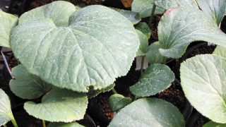 切れ込みの無い珍しい丸葉の選抜品種。開花期 4-6月 冬季 落葉 日当たり 明るい日陰 耐寒性 強 水やり 多め 施肥 春・秋に油粕肥料、生育時に有機液肥を2週間に1回程度 用土 山野草の土/基本培養土