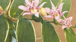 金星の中斑に縞を交える銘品。開花期 4-6月 冬季 落葉 日当たり 明るい日陰 耐寒性 強 水やり 普通 施肥 春・秋に油粕肥料、生育時に有機液肥を2週間に1回程度 用土 山野草の土/基本培養土