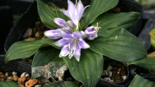 桃紫色の花を数輪付ける開花期 4-6月 冬季 落葉 日当たり 明るい日陰 耐寒性 強 水やり 普通 施肥 春・秋に油粕肥料、生育時に有機液肥を2週間に1回程度 用土 山野草の土/基本培養土